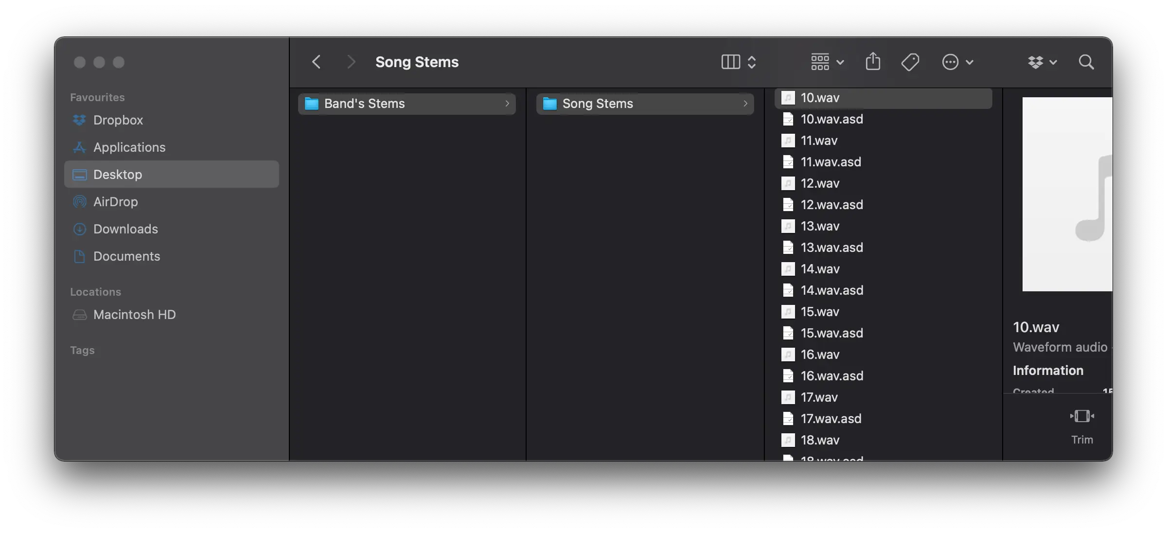 - Use an appropriate name for what’s in the audio file. Sounds obvious but here’s a screenshot of some real stems we’ve worked with before…